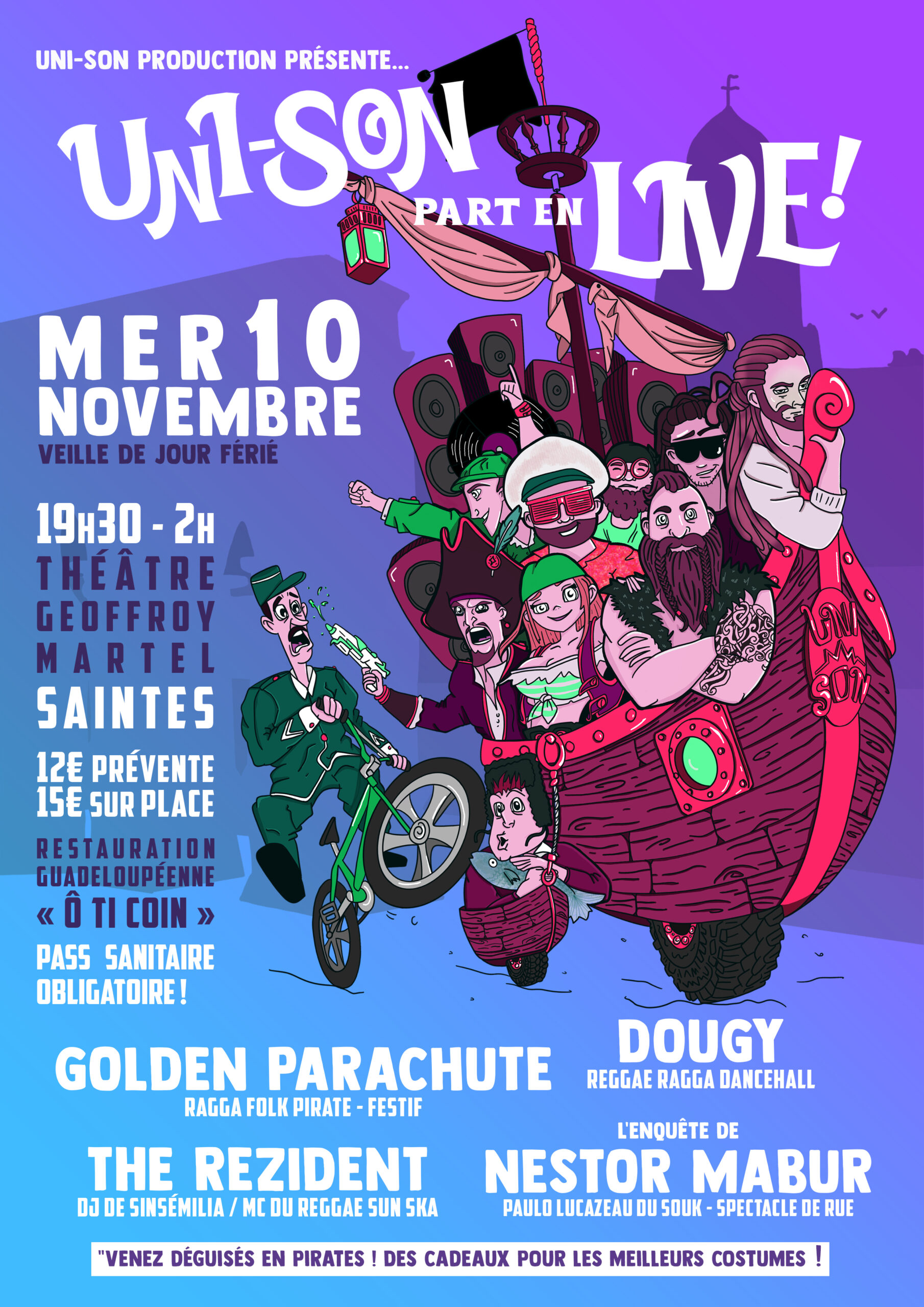 C’est la reprise des festivités alors profitons-en pour prendre à l’abordage le mythique Théâtre Geoffroy Martel de Saintes, mercredi 10 Novembre (veille de jour férié) dès 19h30 !
