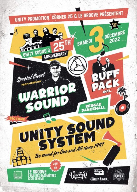 pour la dernière date de l’année, le Corner 25 accueil Unity sound system pour fêter leurs 25 ans d’activisme dans le Reggae/Dancehall à Genève !