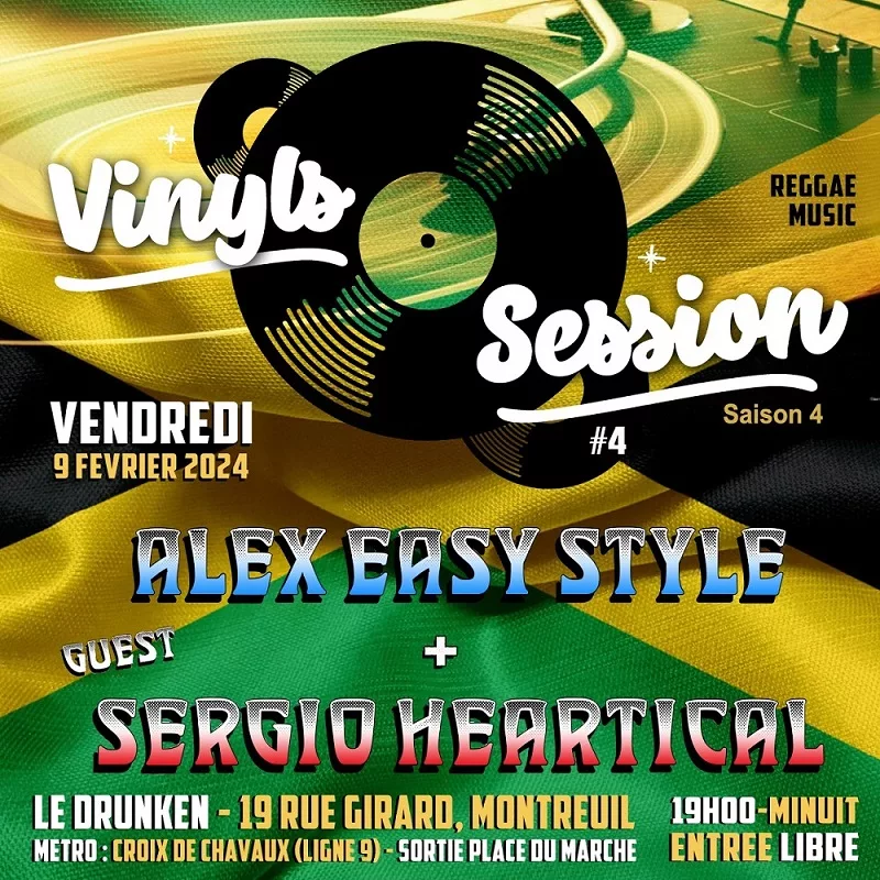 Alex Easy Style sera de retour au Drunken en compagnie de Sergio Heartical Vendredi 9 Février 2024 avec une nouvelle Vinyls Session 100% Reggae Music.