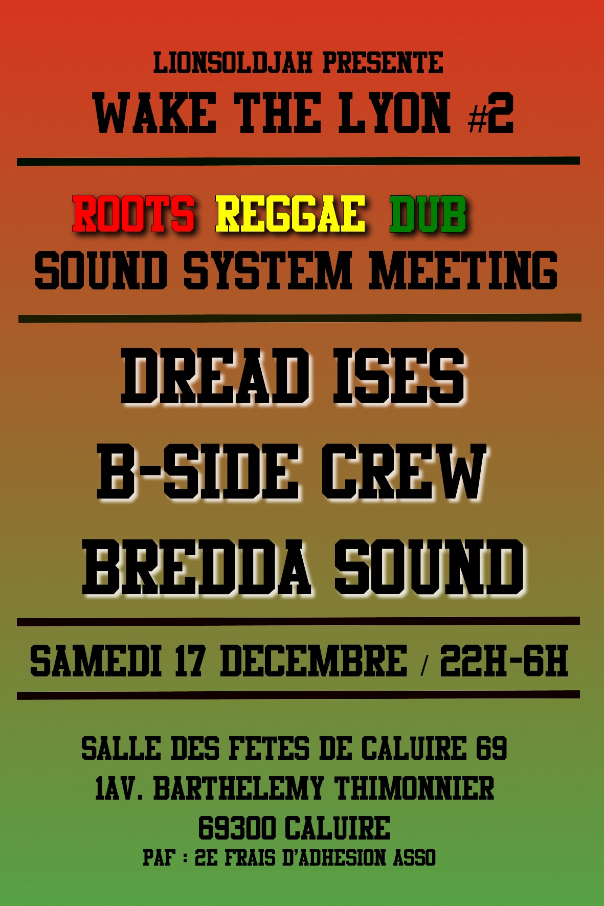 local_playSound System date_rangeLe access_timeDébut à 22 h 00 min placeÀ Salle des Fetes de Caluire, 1 avenue Barthelemy Thimonnier,