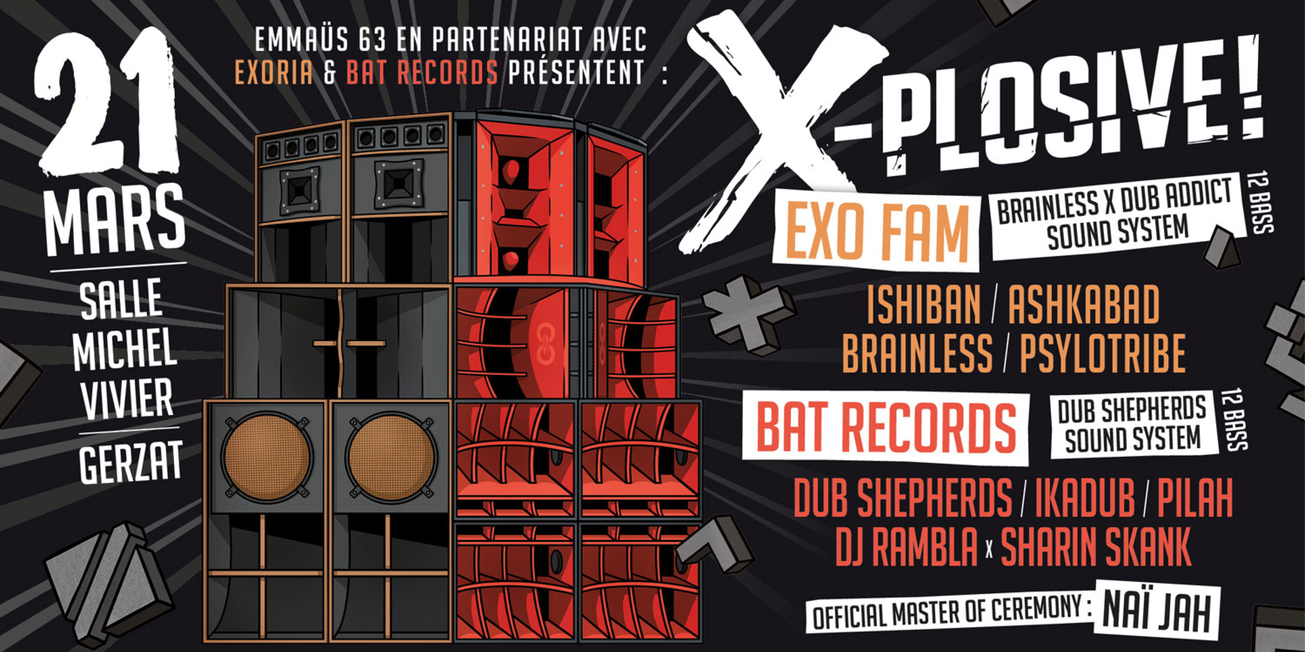 D’un côté, Brainless Sound System et Dub Addict sound system associeront leurs Sound Systems pour un combo exclusif sur lequel jouera la team EXO FAM. De l’autre, Dub Shepherds Sound et leur sound system sur lequel jouera la team BAT RECORDS.