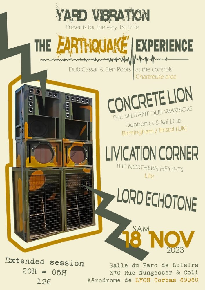 Samedi 18 Novembre 2023, Dub Cassar et le Lord Echotone vous préparent un plateau EXCLUSIF à Corbas pour la prochaine YARD VIBRATION !