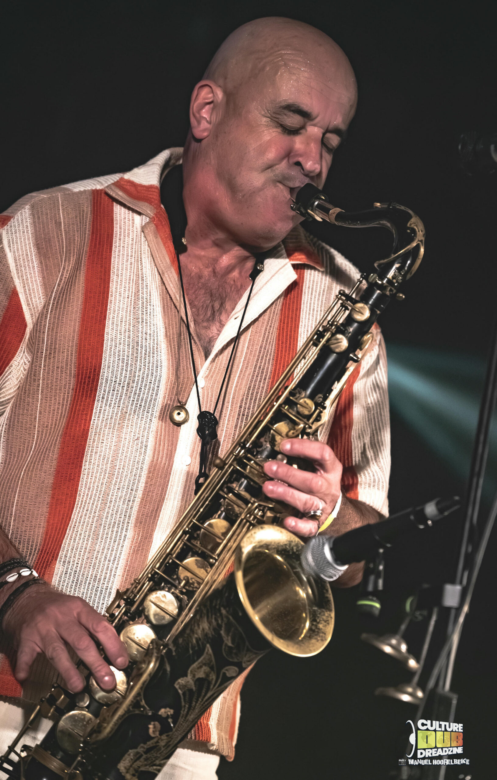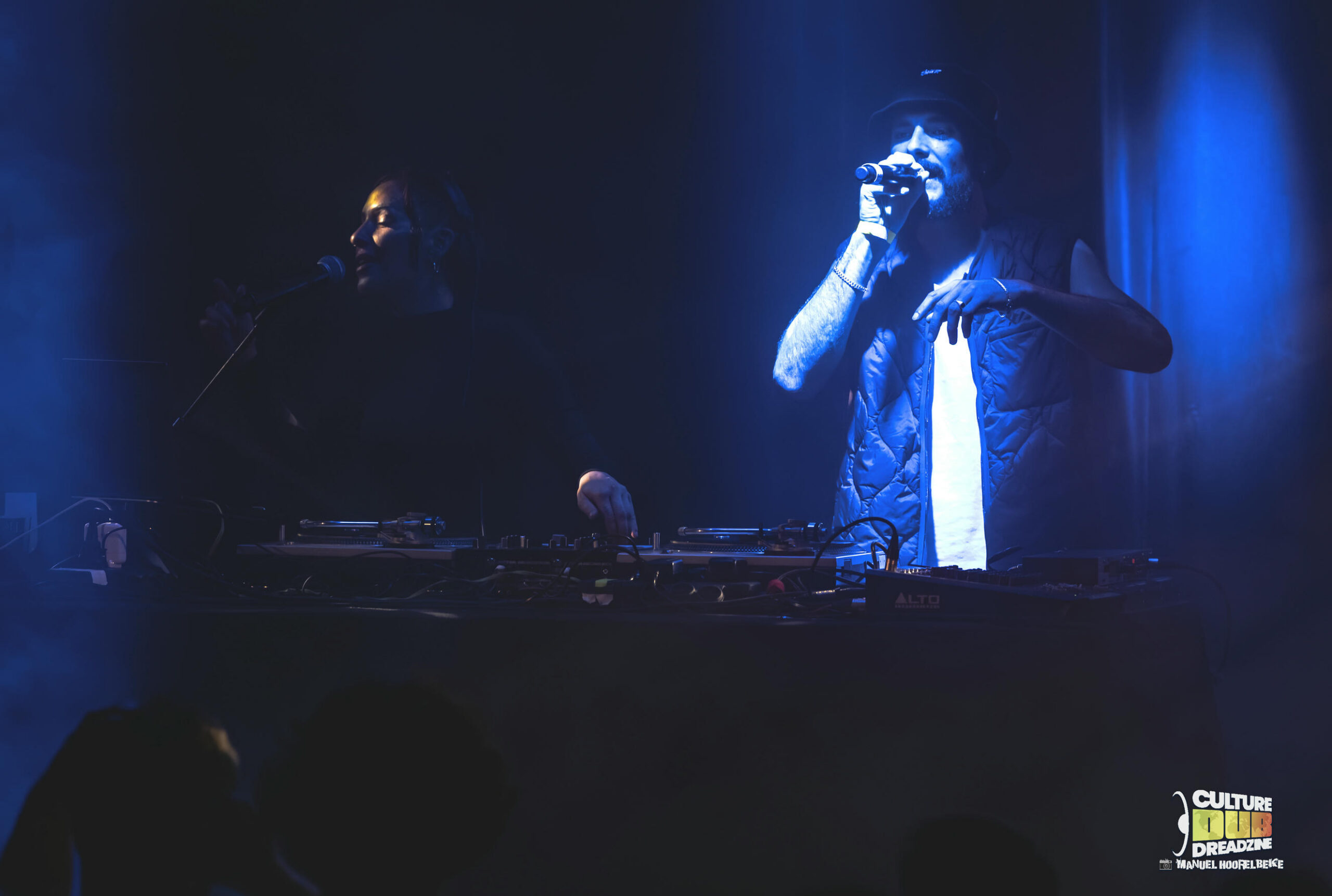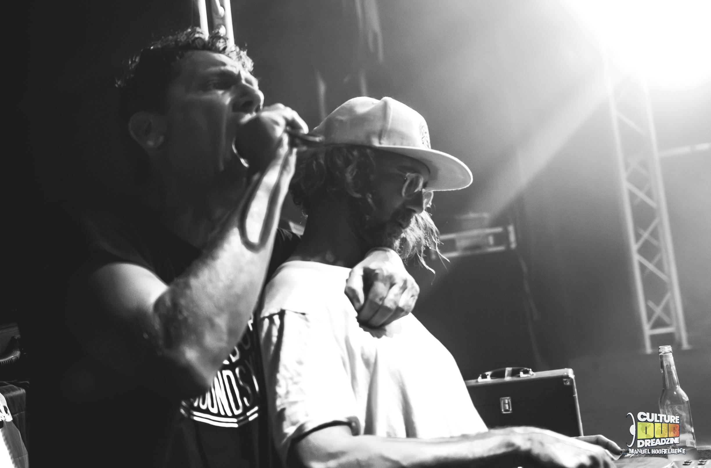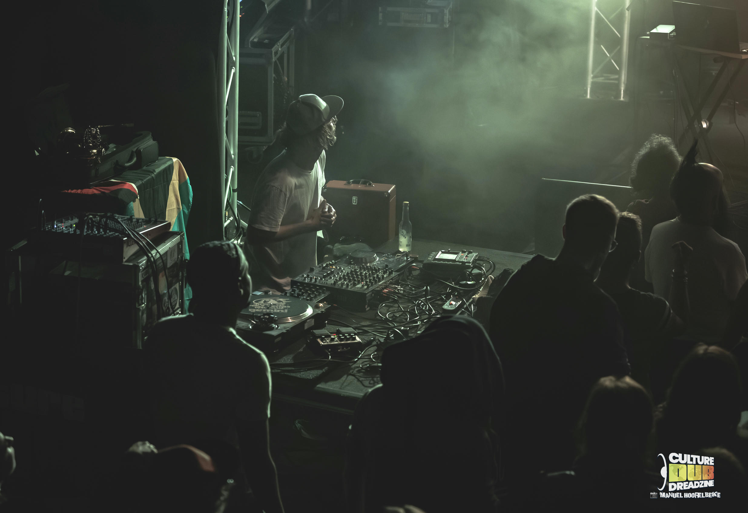 Le public se repositionne une dernière fois devant les platines du parterre de la salle, face au Culture Dub Sound. Des dubplates toutes nouvelles, où se sont posés tour à tour le Sax magique de Guru Pope ainsi que la voix ultra dynamique de Little R, ou encore Antonin avec son Harmonica. Quoi de mieux pour finir une soirée de manière si explosive ! Les vibes sont au rendez-vous et le public les reçoit de plein fouet pour les absorber ! Tout ce petit monde ne fait qu’un, et la communion est véritable ! Si Little R nous envoi des rafales au micro, sur les mix d’AlexDub, Guru Pope n’est pas loin pour accompagner les riddims, qu’il soit caché à côté de la control tower, ou sur un caisson de Basse, mais tous partagent et les spectateurs sont en fusion !
