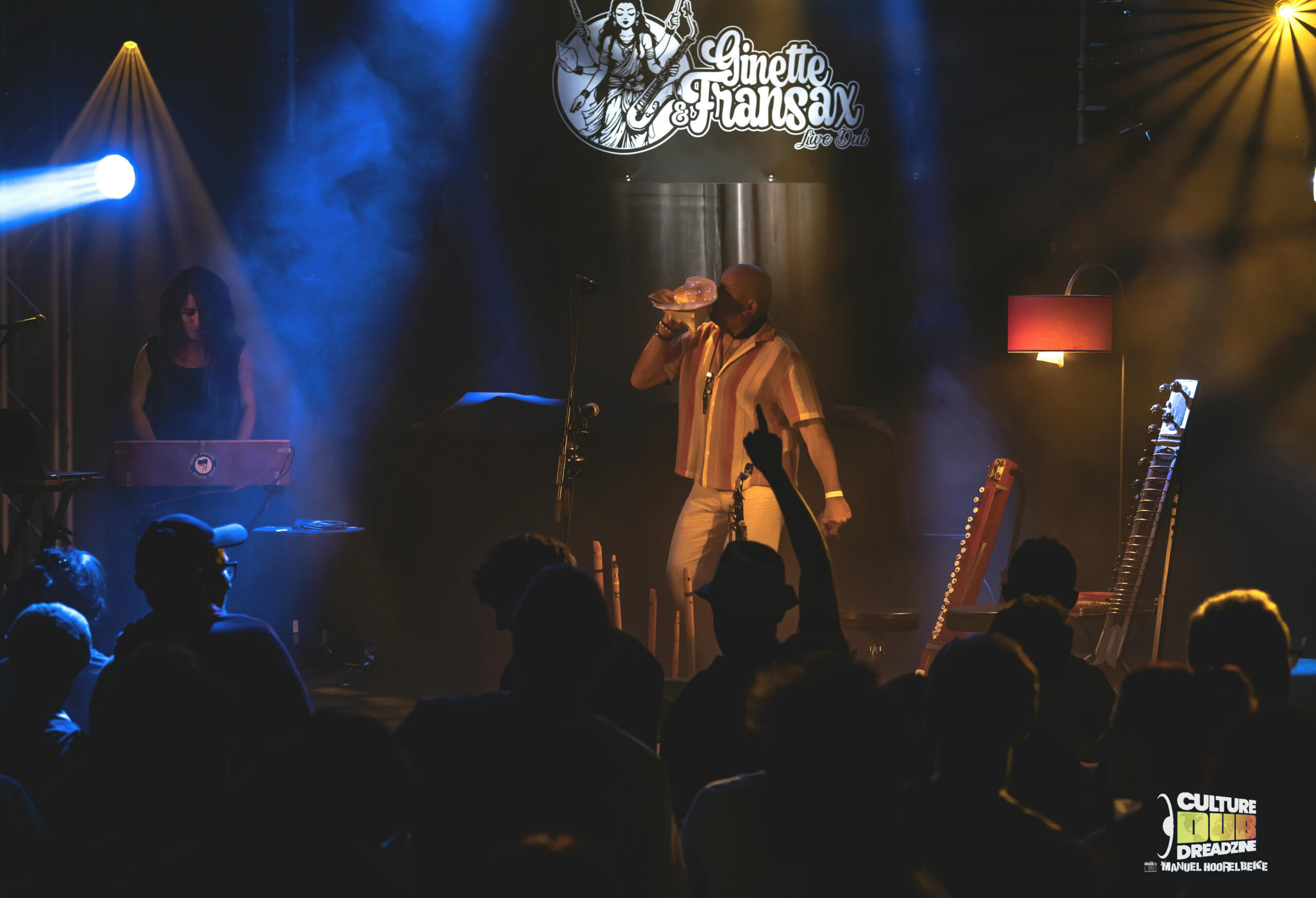 C’est sur la scène que se déroulera la suite, avec les artistes Ginette et Fransax. Talentueuse productrice, la Bordelaise Ginette est aux manettes, pour mixer en live les créations envoutantes, que le multi-instrumentalise Fransax vient enrichir avec son Saxophone, d’un Dilruba, d’un Sitar, de Flûtes ou encore d’une Shankha (Conche)… Un univers très atypique et enthousiasment, dont le public se délecte, tant l’exploration est intense. Les rythmes et instruments aux traits à tendances Indous et Africaines, mêlées aux basses intenses font de ce show, quelque-chose de mystique et haletant ! Nous profiterons notamment des créations de leur futur album « Traveling Mindset » ou d’autres avec Janiss Anton, ainsi que Little R qui montera sur scène, pour délivrer son flow.