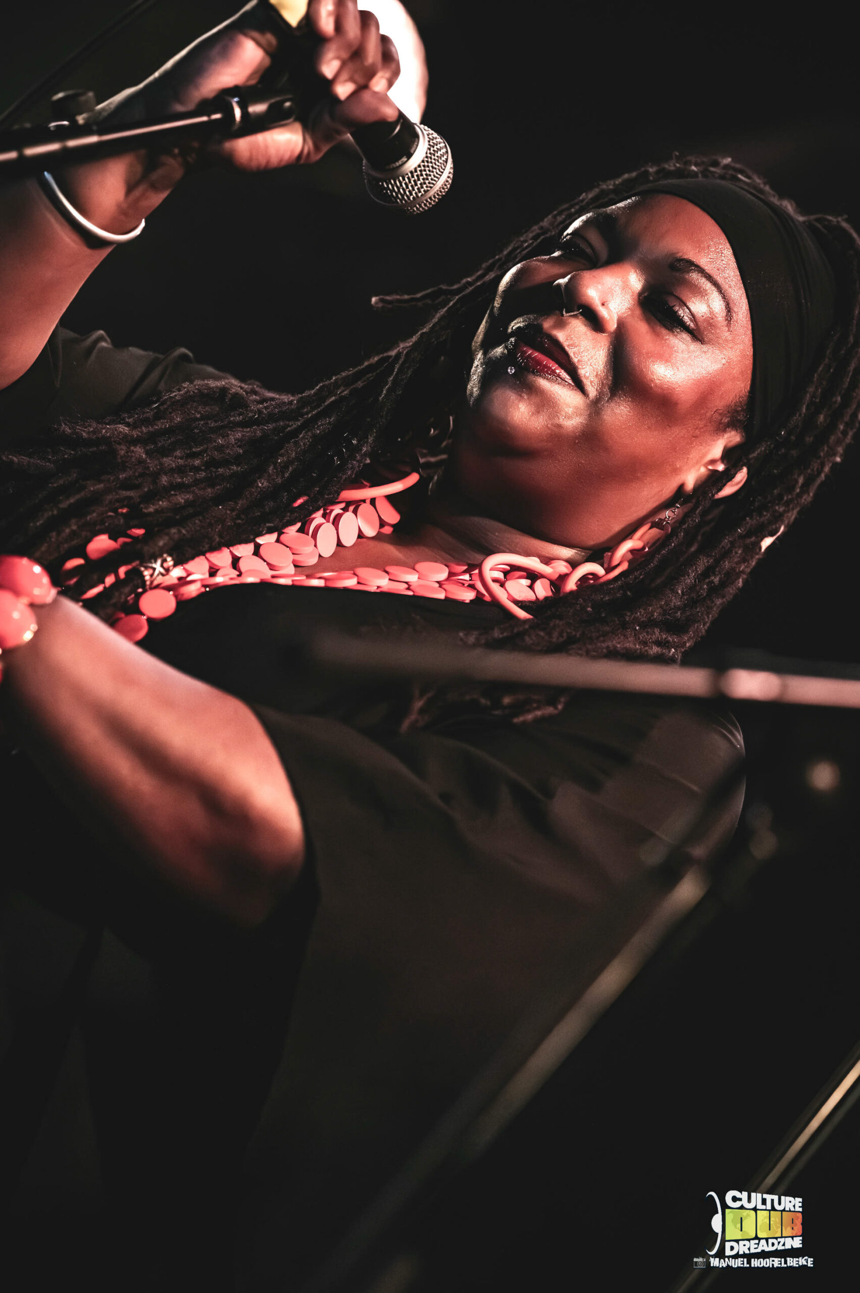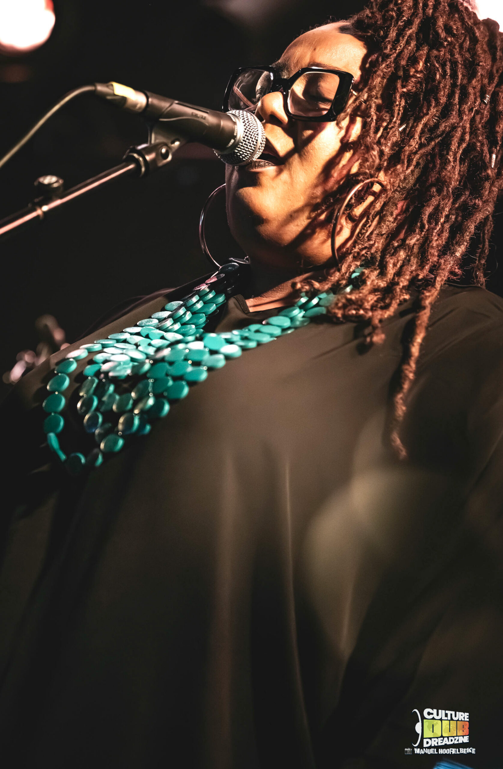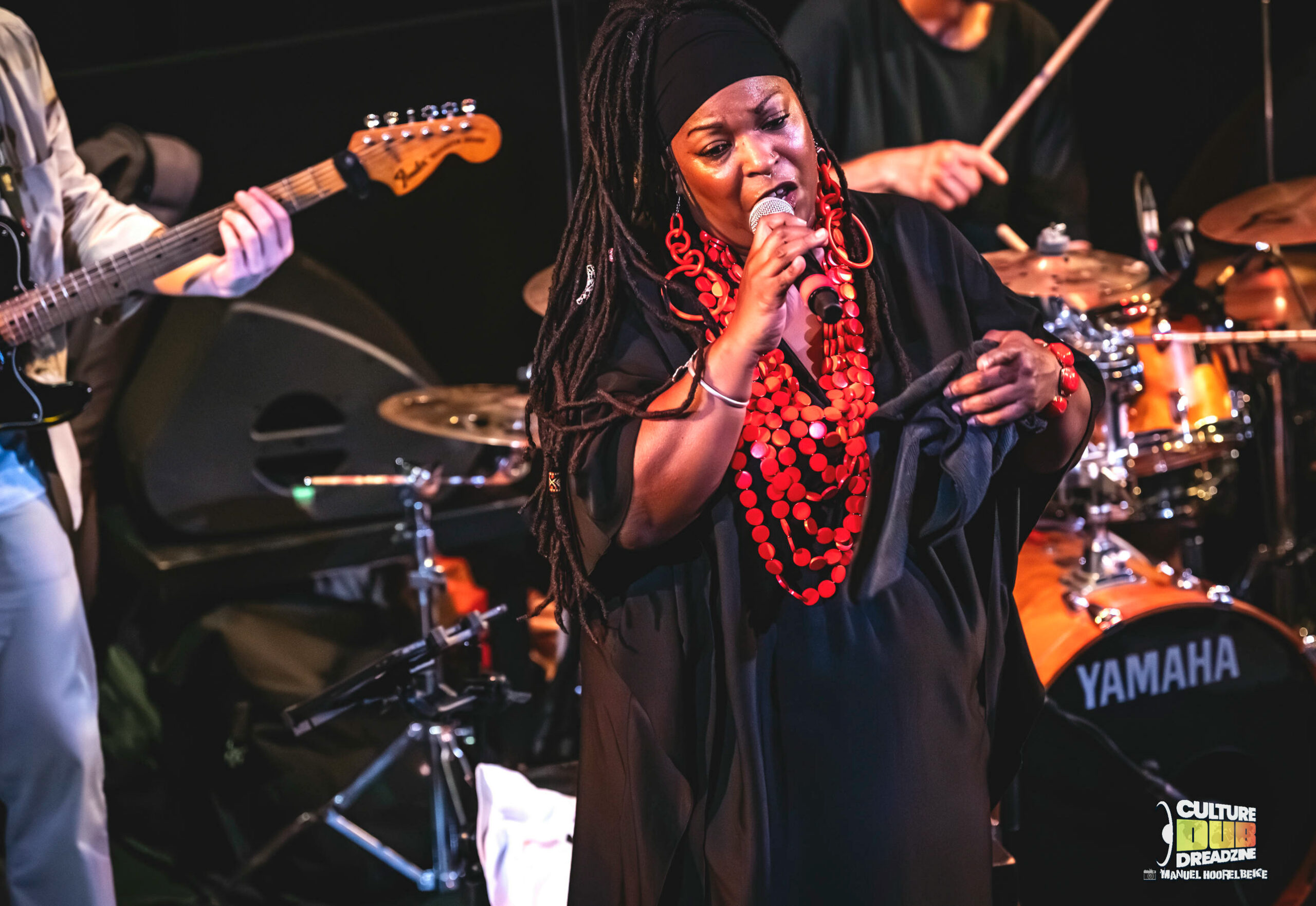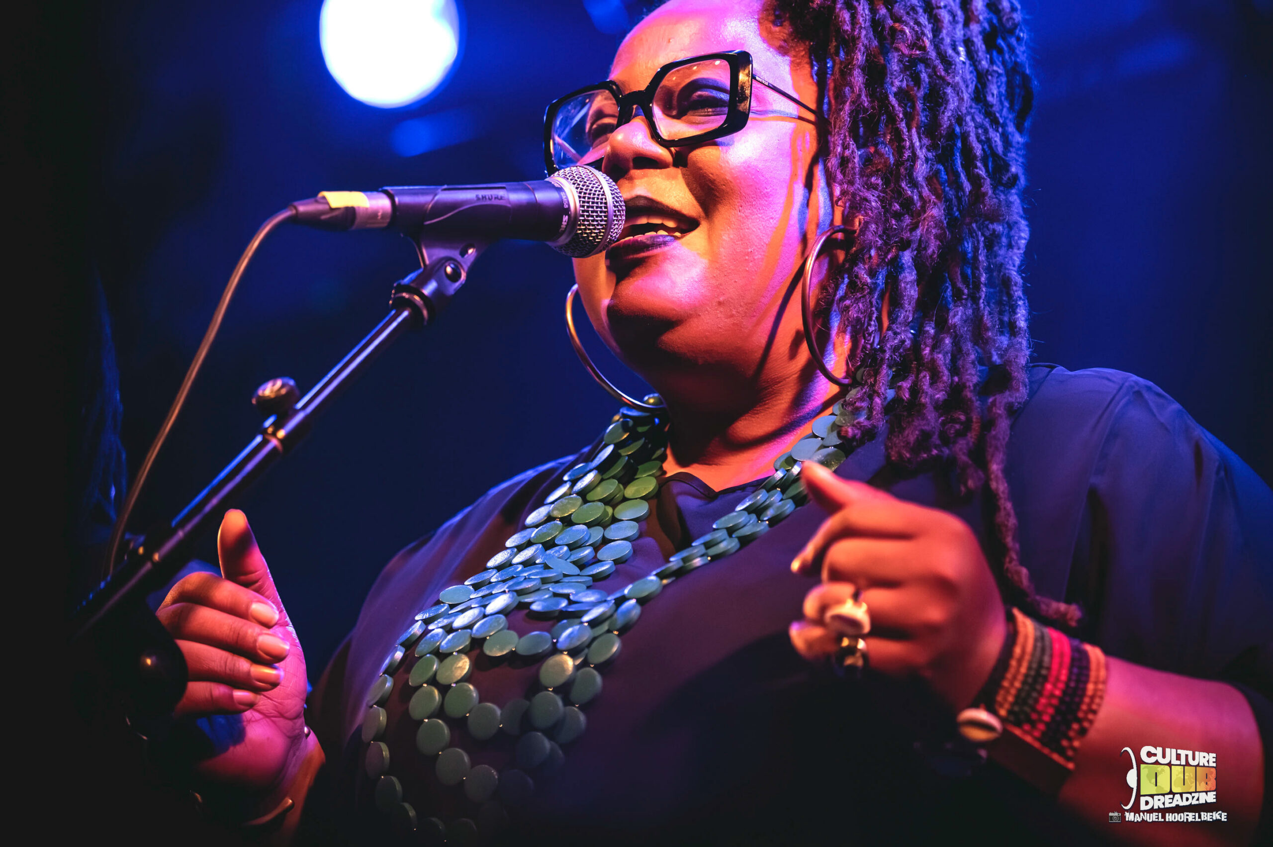 Le Bateau Ivre, à Tours, n’en finit plus de faire plaisir aux amateurs de Reggae et de Dub… Pour fêter glorieusement ses cinq années de renouveau, l’équipe organisait le 8 octobre 2025 une nouvelle soirée Reggae : un concert exceptionnel avec la venue tout aussi exceptionnelle de la chanteuse Trinidadienne Queen Omega, digne héritière du Mouvement Reggae International, en Live, avec son Royal Souls Band, précédée du groupe Tourangeau HuSTLe, à revivre grace au report et aux clichés de Manu Hoorelbeke inna Culture Dub !