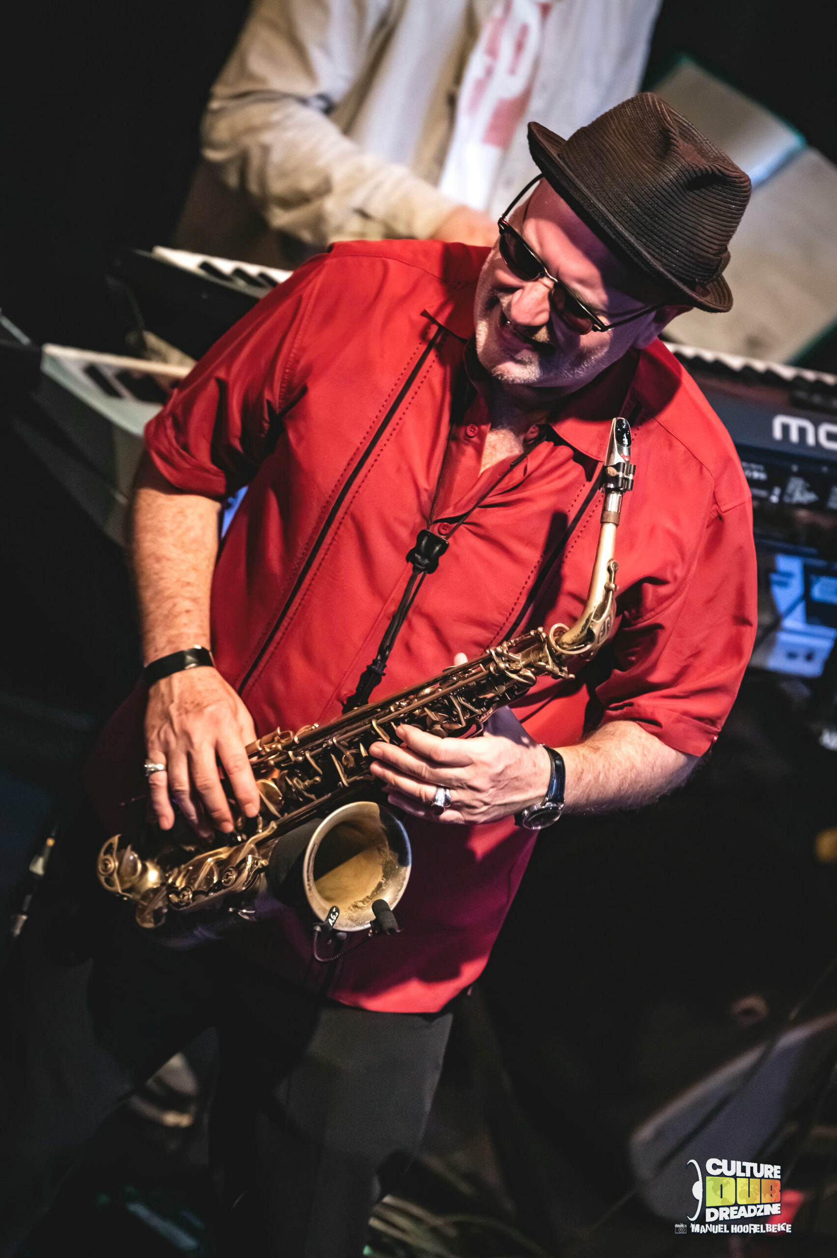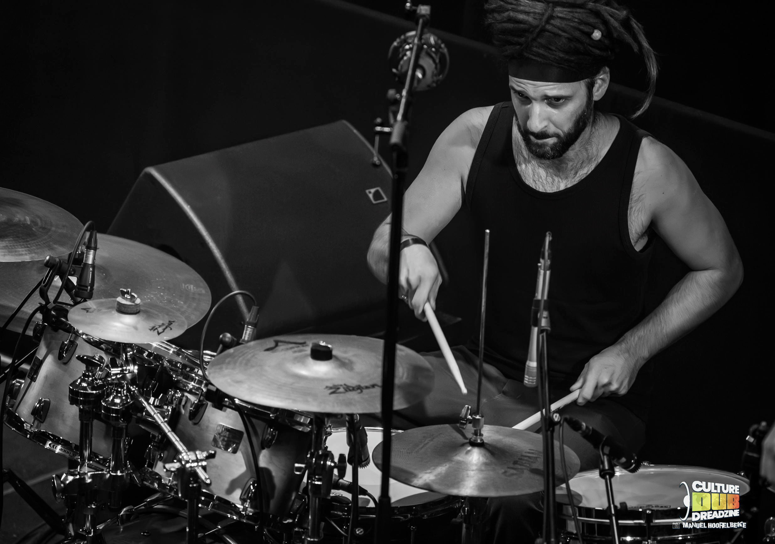 La soirée s’ouvre avec le groupe HuSTLe. Les six Tourangeaux ont su démontrer avec brio leurs talents sur scène, pour une première partie plus que réussie. Déjà auteurs de trois EPs, ils sont nous ont ravi de leurs compositions Reggae qui se fondaient parfaitement avec l’esprit de cette soirée. Que ce soit par les rythmes des percussions, des lignes de basses profondes ou des voix entrainantes, le groupe a rapidement mis le public dans l’ambiance.