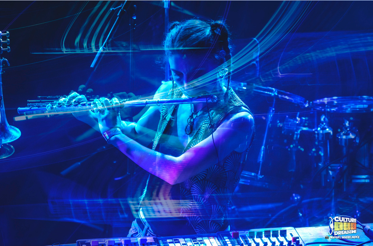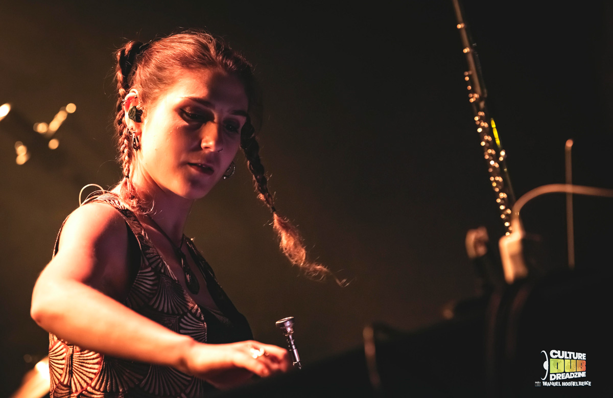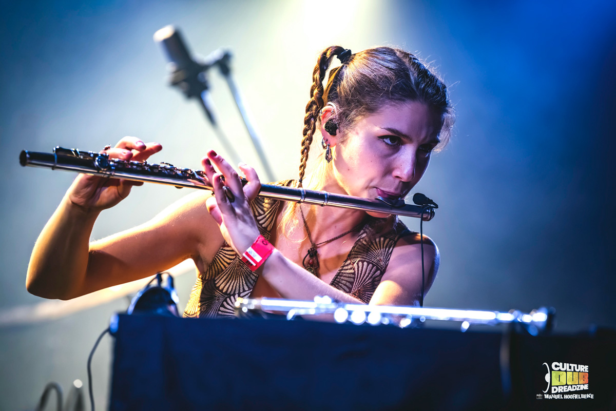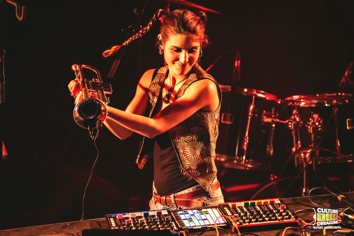 Youthie prend ensuite le relais sur scène, devant un public attentif, amassé sur le pont du Bateau Ivre. C’est seule sur scène, mais accompagnée de ses machines et ses quatre instruments que la jeune musicienne fait parler sa magie. Talentueuse productrice, Youthie s’est fait connaître en Sound System par ses titres aux sonorités Balkaniques, sur des pistes Dub, également mixées en Live. Une atmosphère terriblement captivante dont le public semble s’accaparer rapidement, tant les rythmes le font rapidement bouger, sur les titres issus aussi bien de son dernier album « Alma de Parejo », mais également de « Ghecko Tones » ou « The Roots Explorers » que l’artiste nous partage…