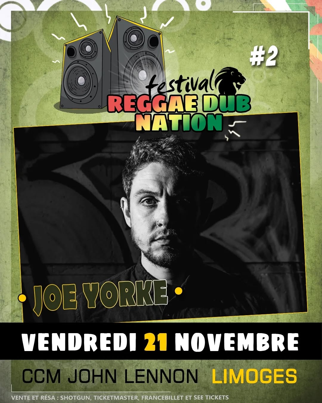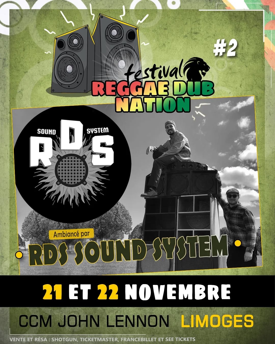 L’association 3AG Production organise la seconde édition du Reggae Dub Nation Festival les 21 et 22 novembre 2025 au Centre Culturel John Lennon de Limoges, avec une pléthore d’artistes aux sonorités Roots, Reggae et Dub : Mister Gang, Joe Yorke, Raspat & Timkat Band, Weeding Dub meets Vibronics feat. Marina P, Pierpoljak feat. Judah Roger, Alpha Steppa et RDS Sound System !